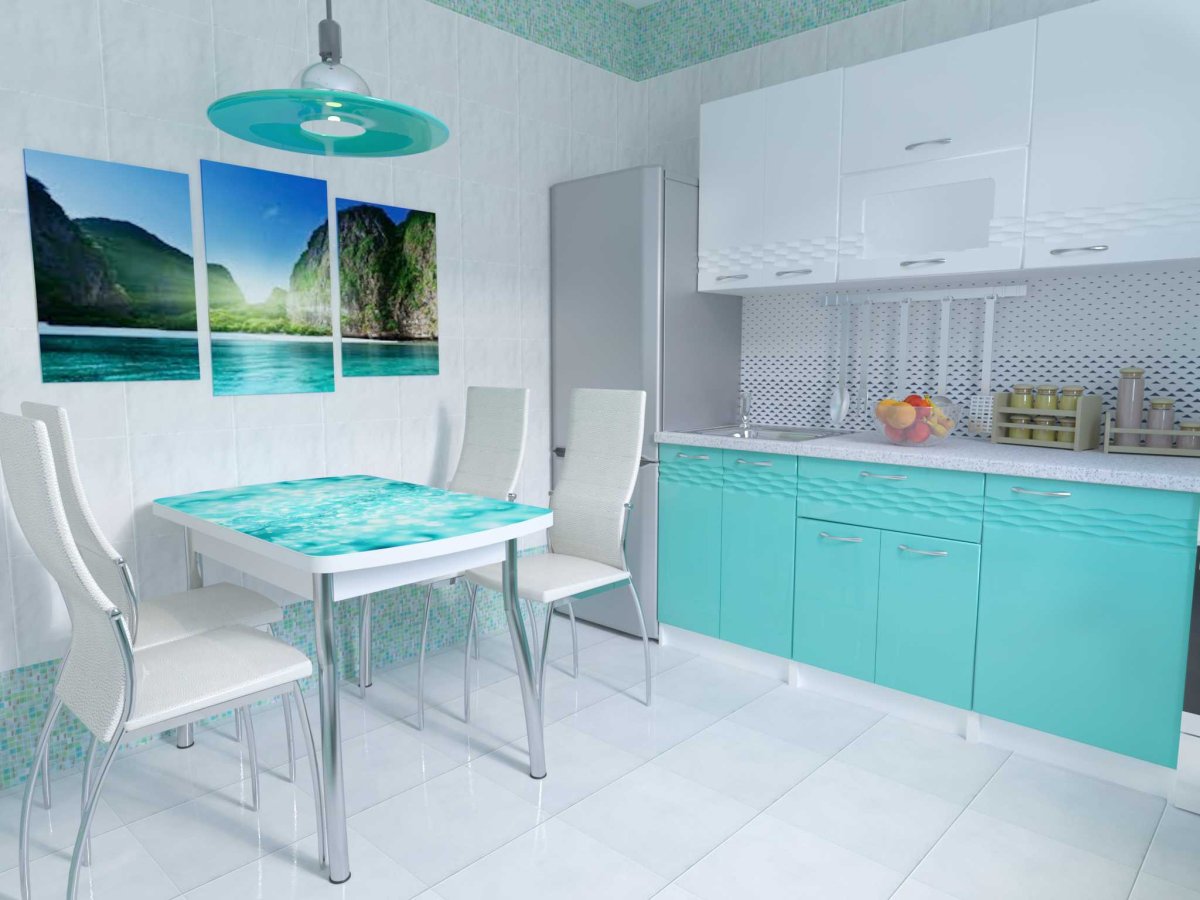 Фото: Кухня в бело бирюзовых тонах