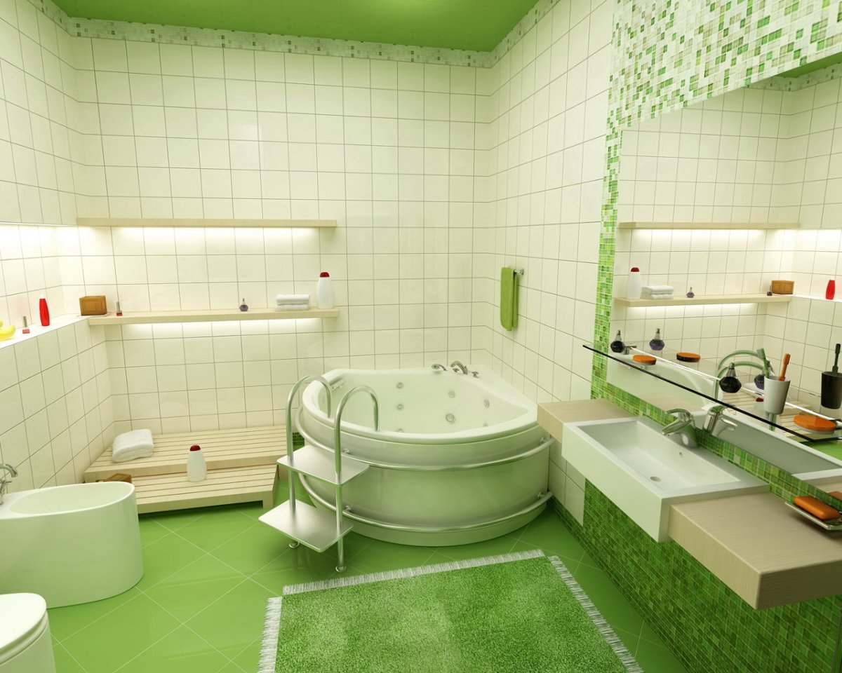 20. Бело зеленая ванная комната