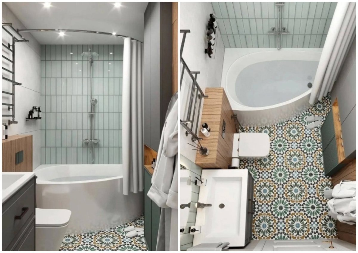 12. Интерьеры ванных комнат с плиткой кабанчик