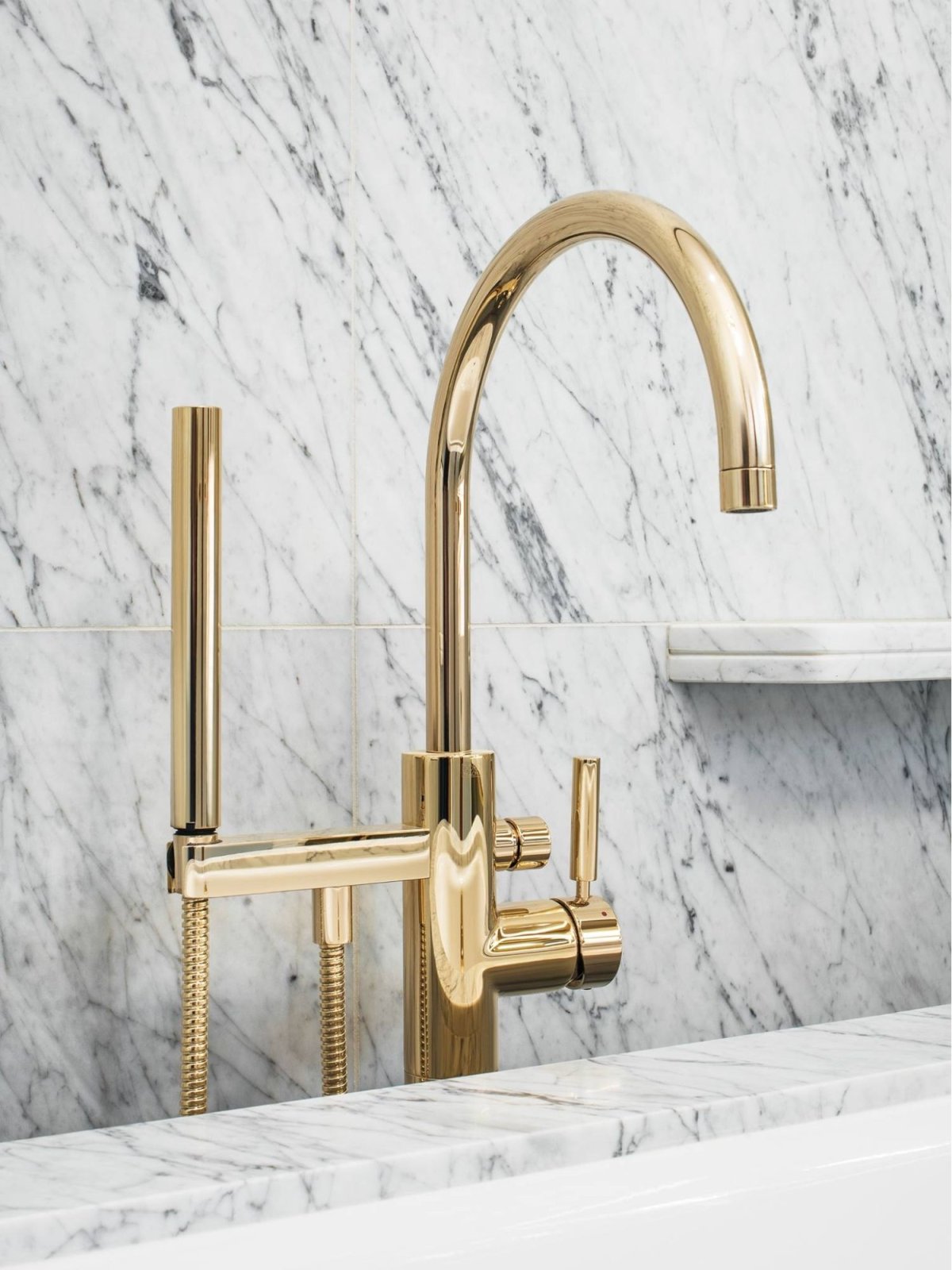 16. Белая ванна с золотистыми аксессуарами