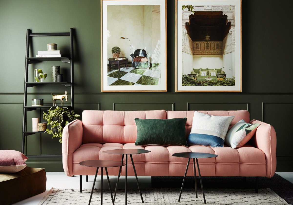 3. Зеленый диван в Сканди интерьере