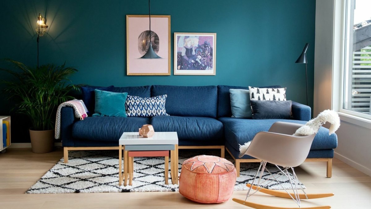 13. Темно-бирюзовый диван в интерьере