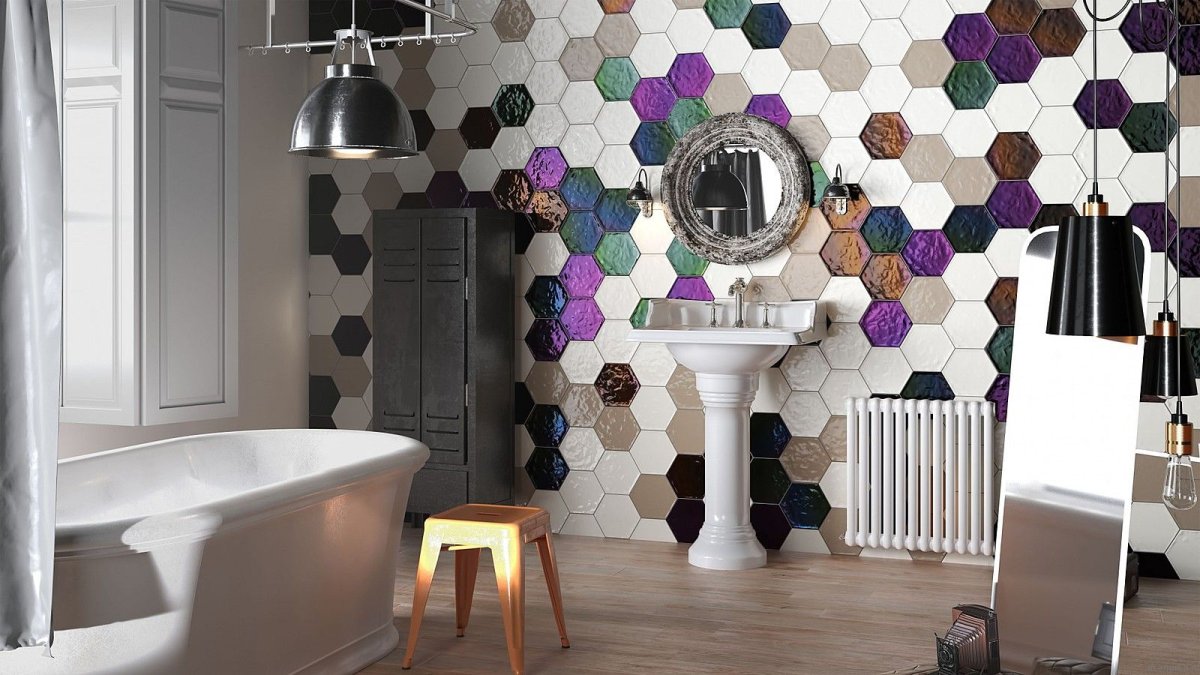 2. Шестиугольная плитка в ванной