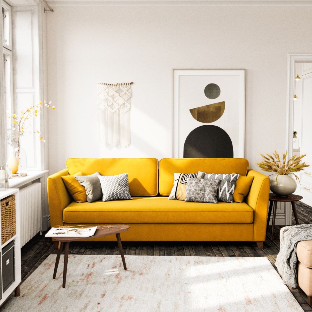 52. Желтый диван в скандинавском стиле