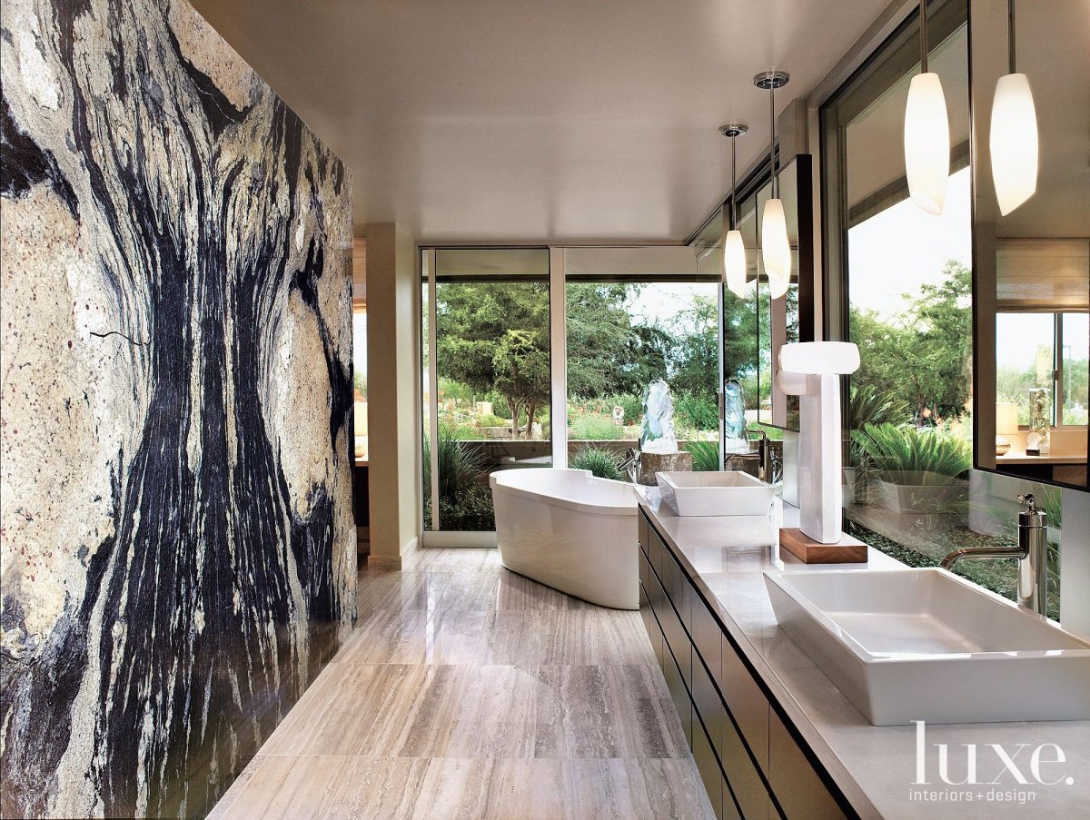 32. Сочетание мрамора и дерева в интерьере гостиной