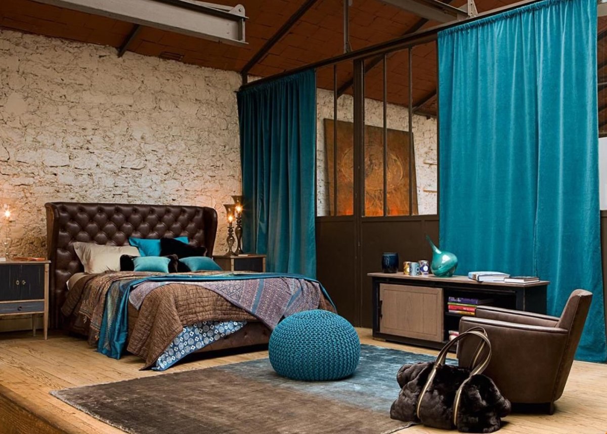 Фото: Спальня в бирюзово коричневых тонах