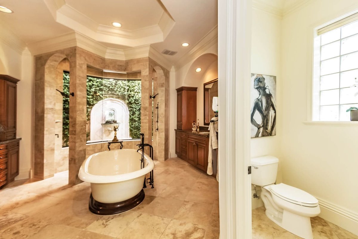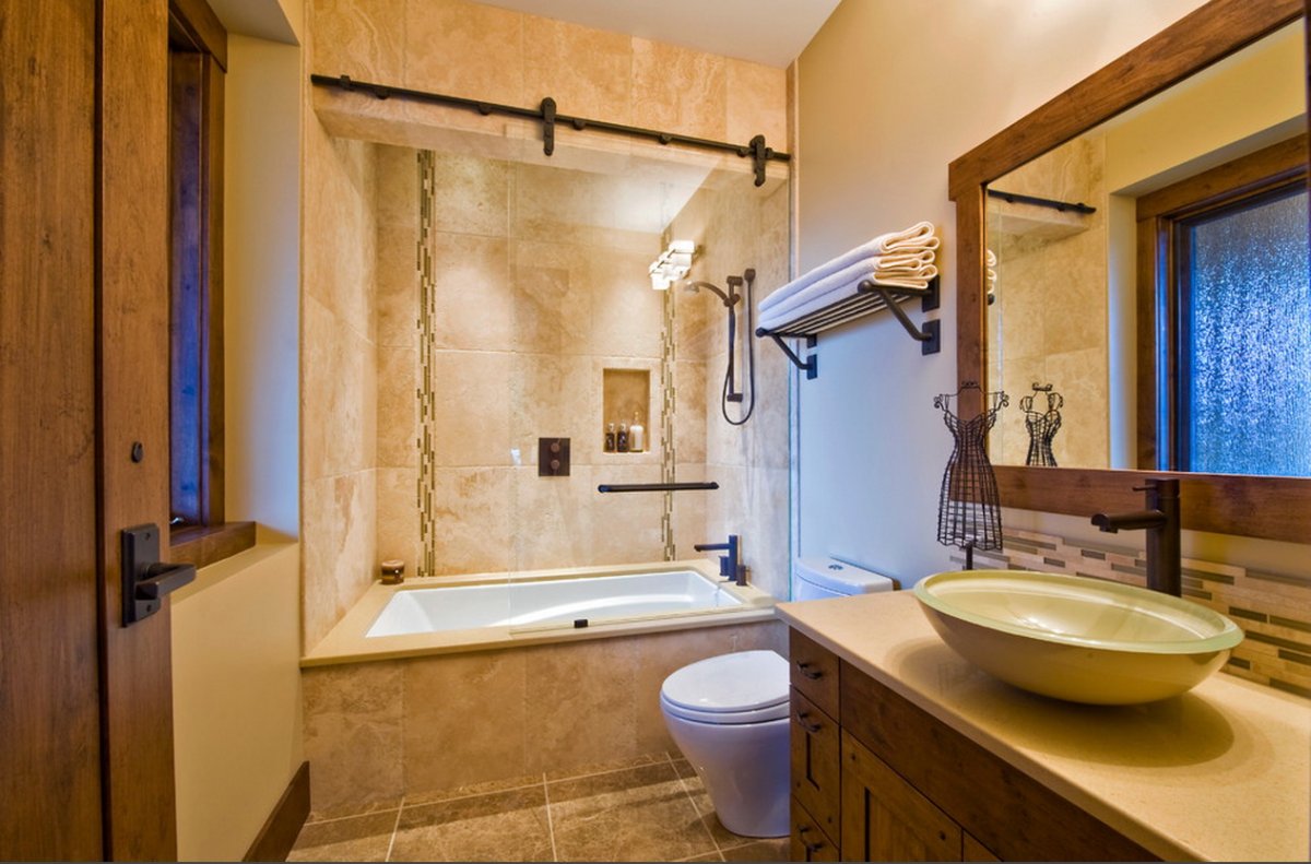 Изысканный дизайн ванной комнаты с использованием тревертина
