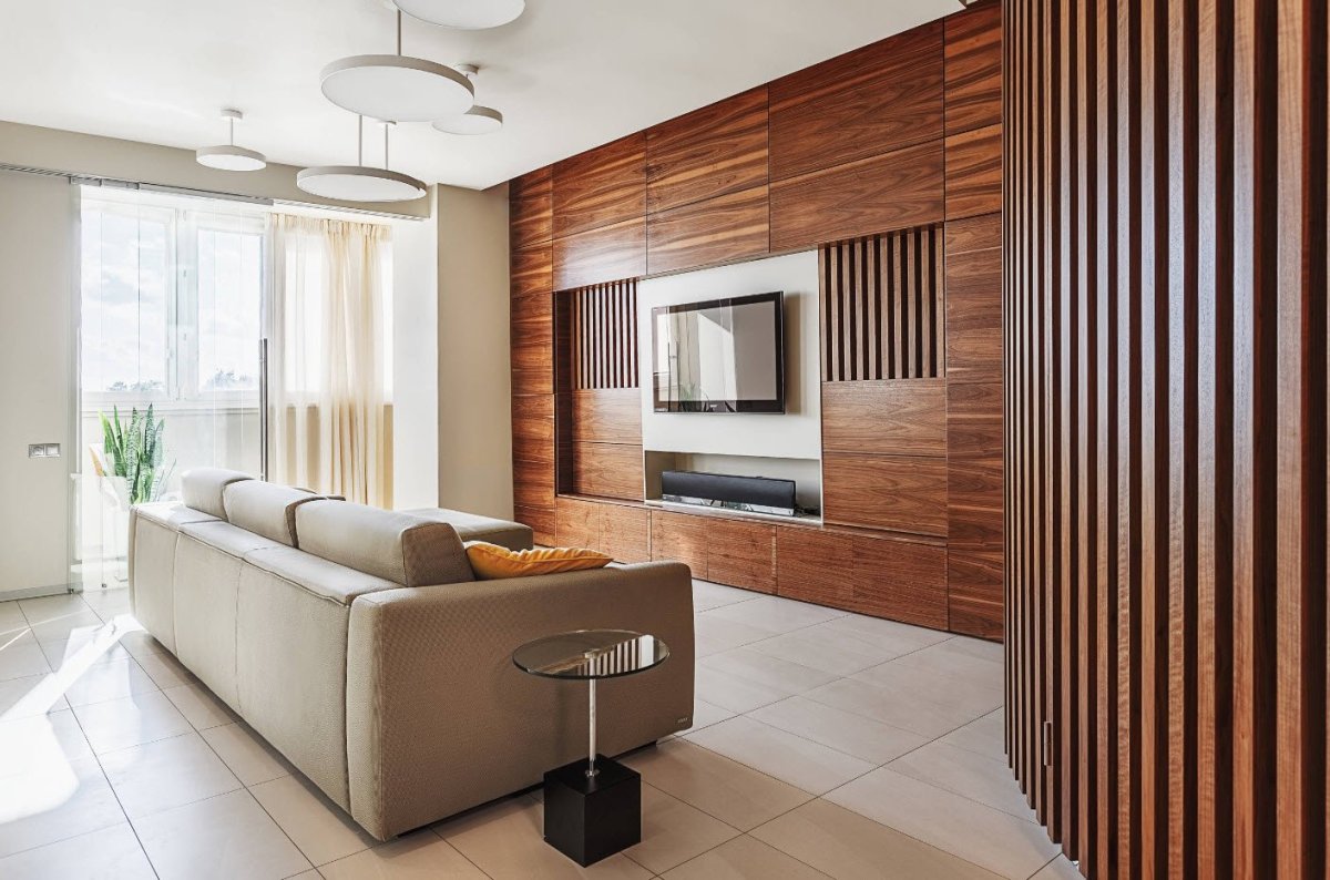 10. Гостиная с деревянными рейками