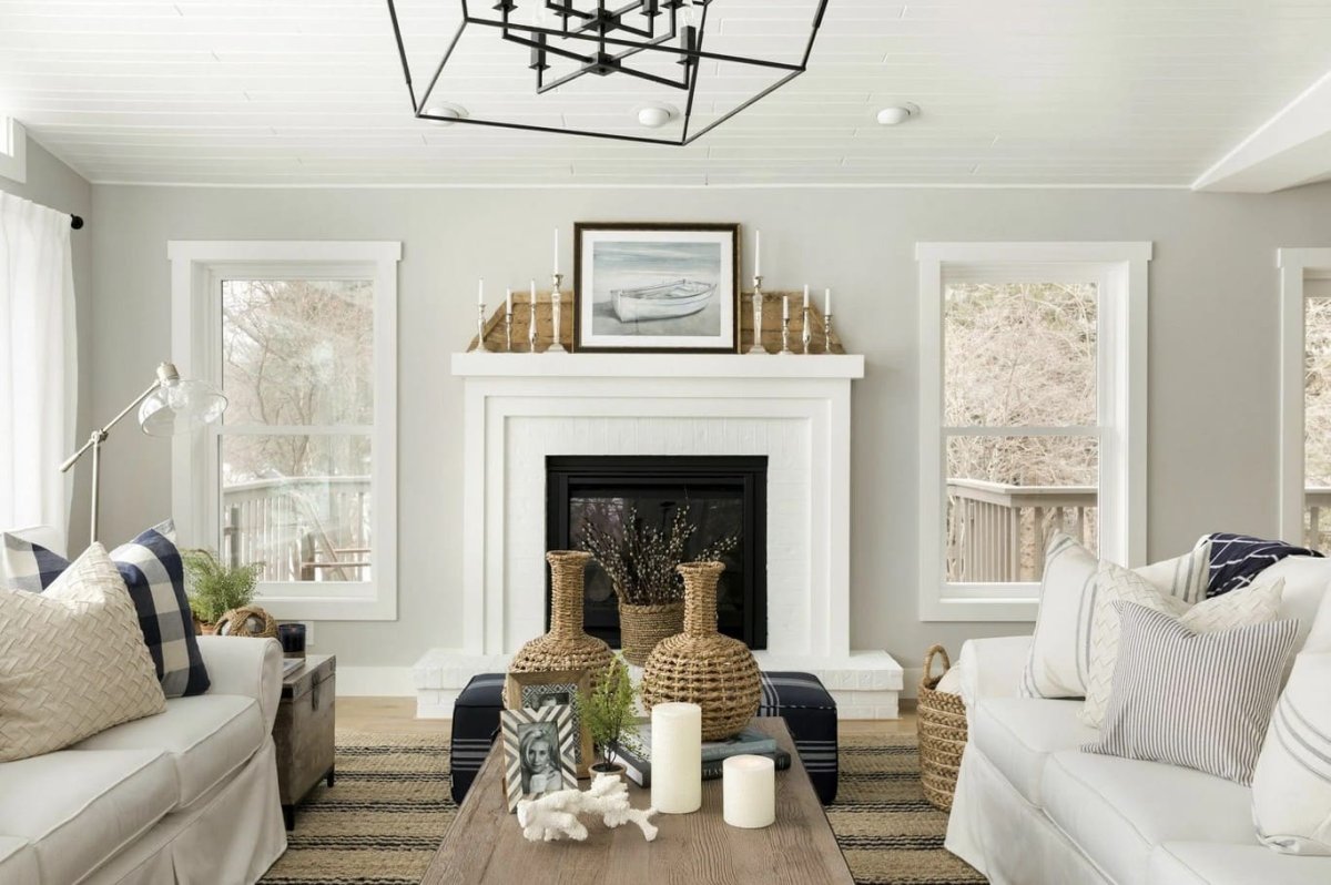 39. Стиль Hamptons в интерьере спальня синяя кровать
