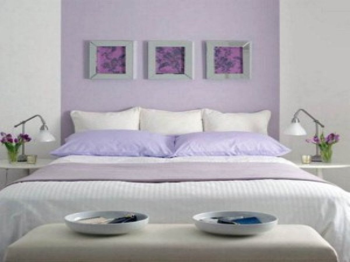 14. Стены под покраску в интерьере спальни лавандовый