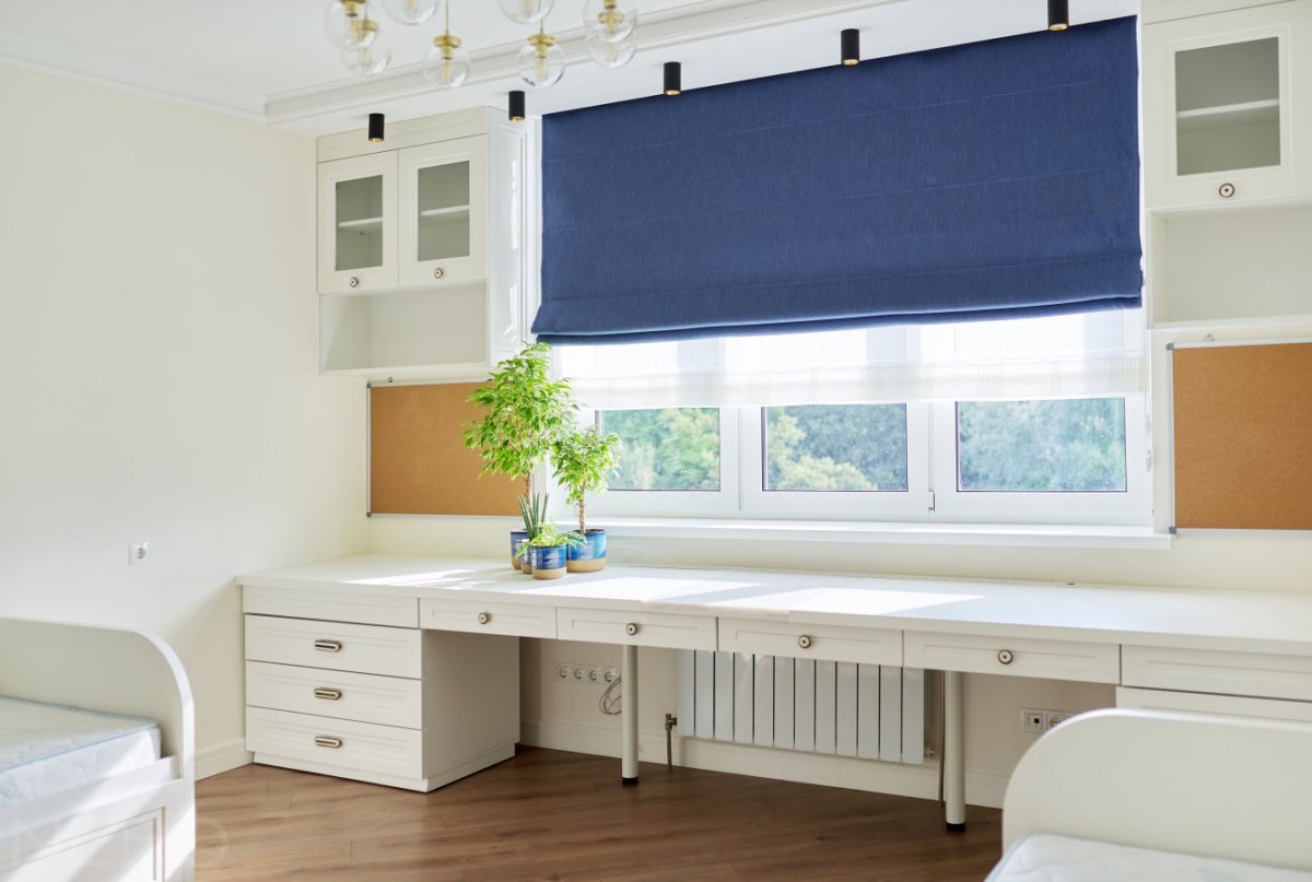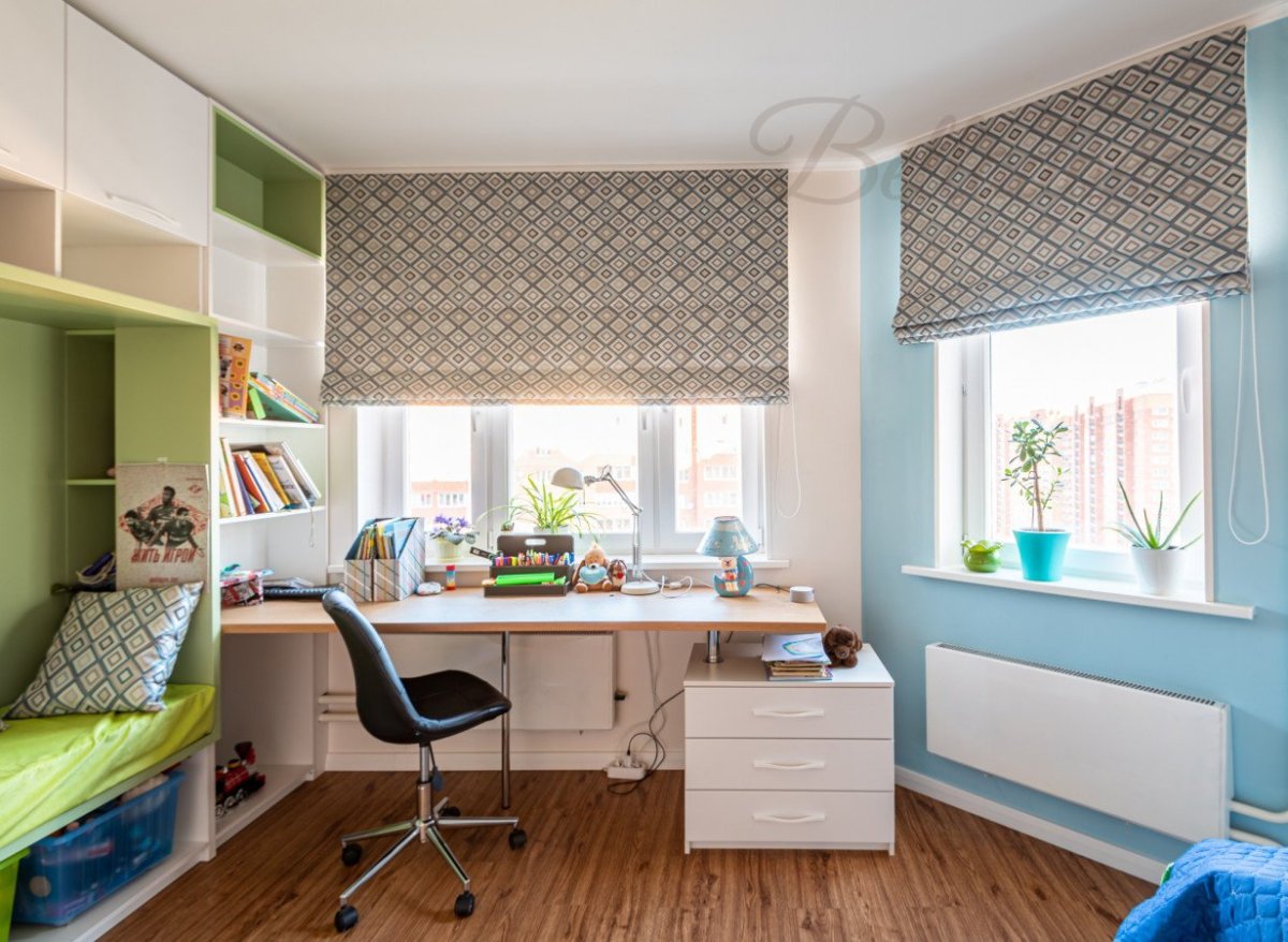 75. Римские шторы в детскую комнату мальчику над столом