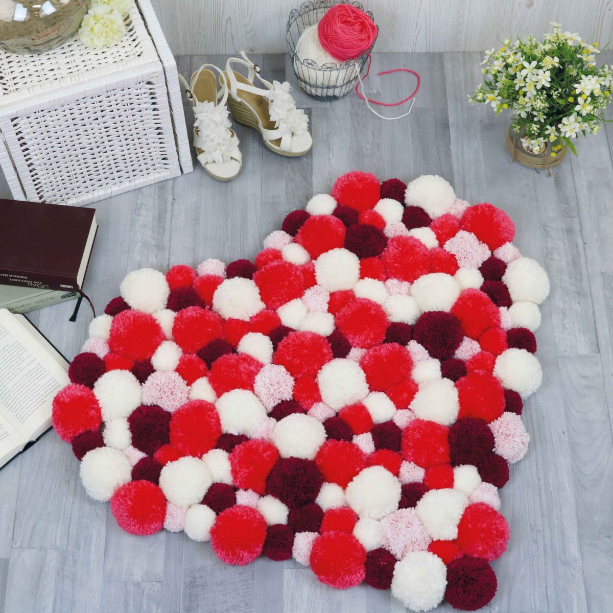 30. Коврик сердце из помпонов
