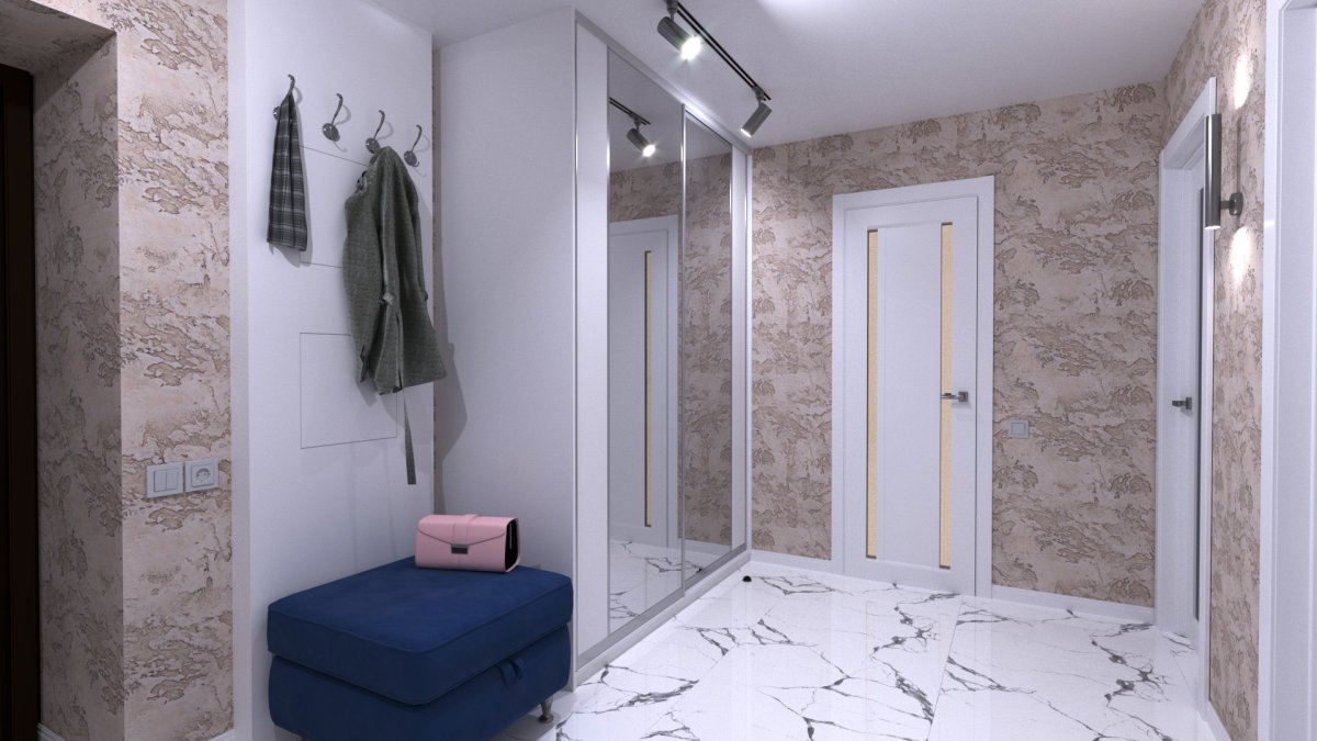 16. Обои в прихожую в квартире с белыми дверями