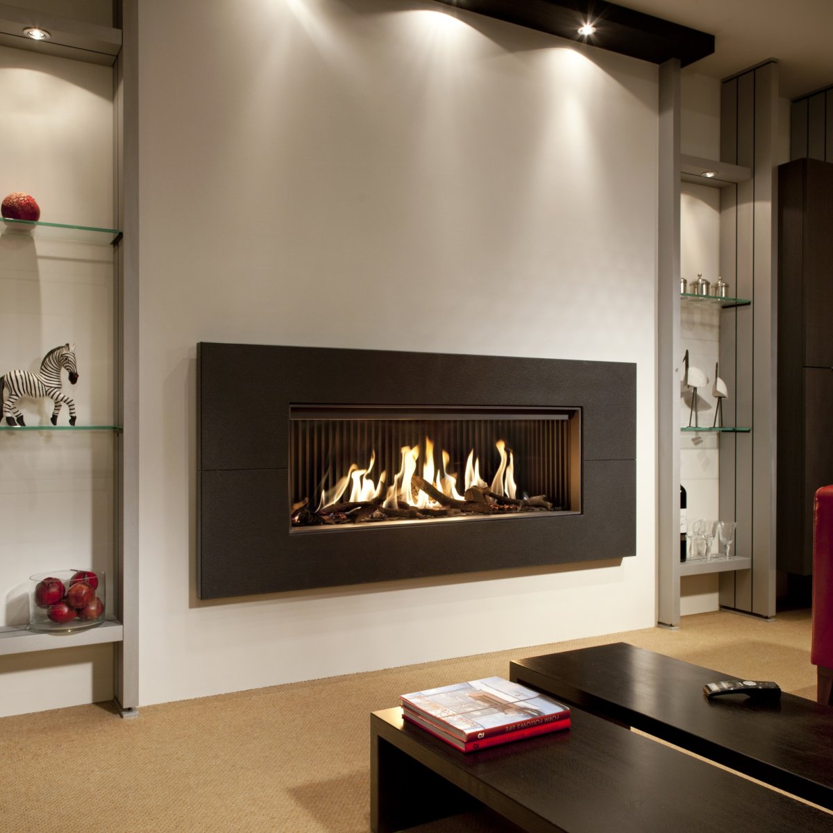 12. Длинный электрокамин в интерьере