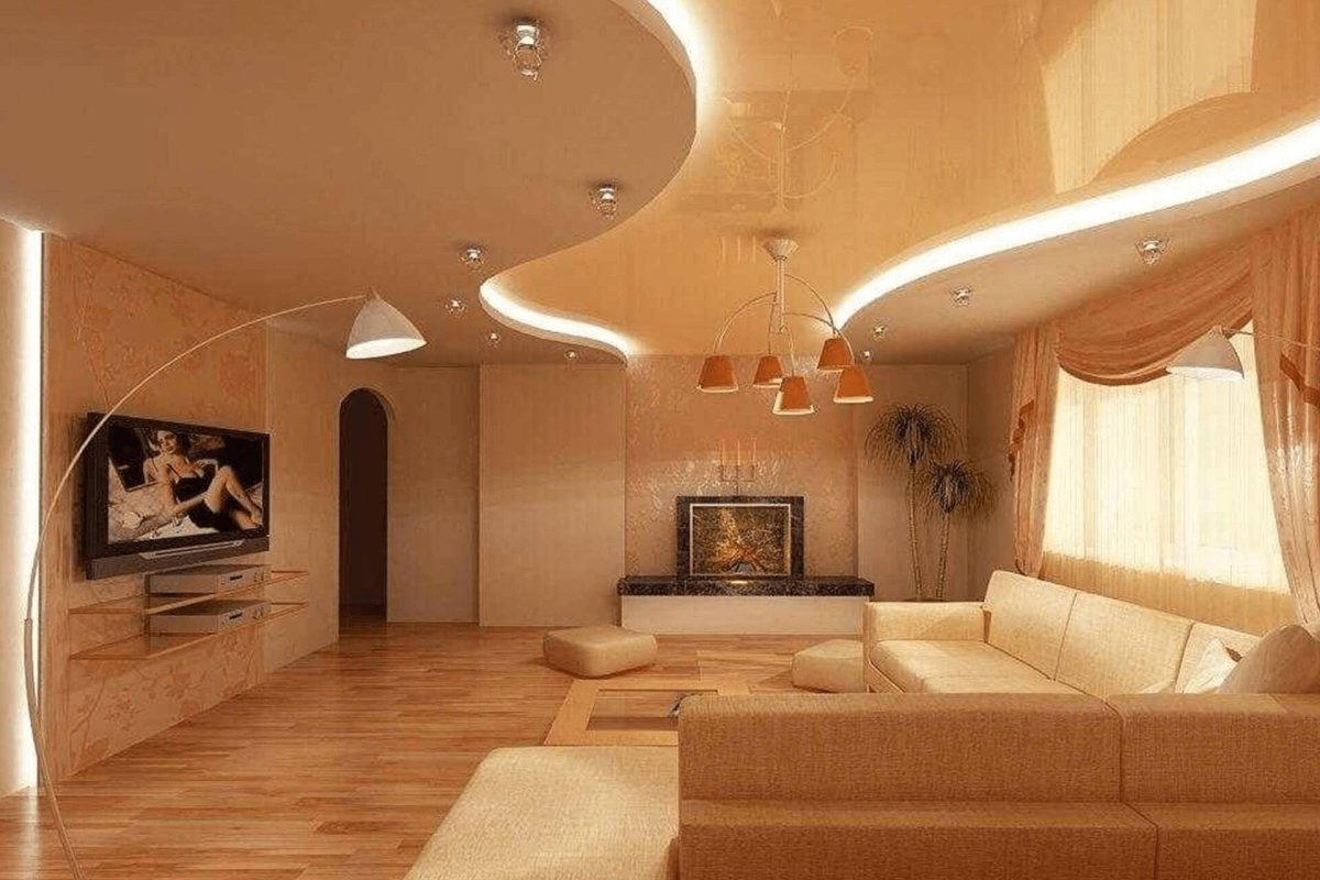 18. Фигурные потолки для гостиной