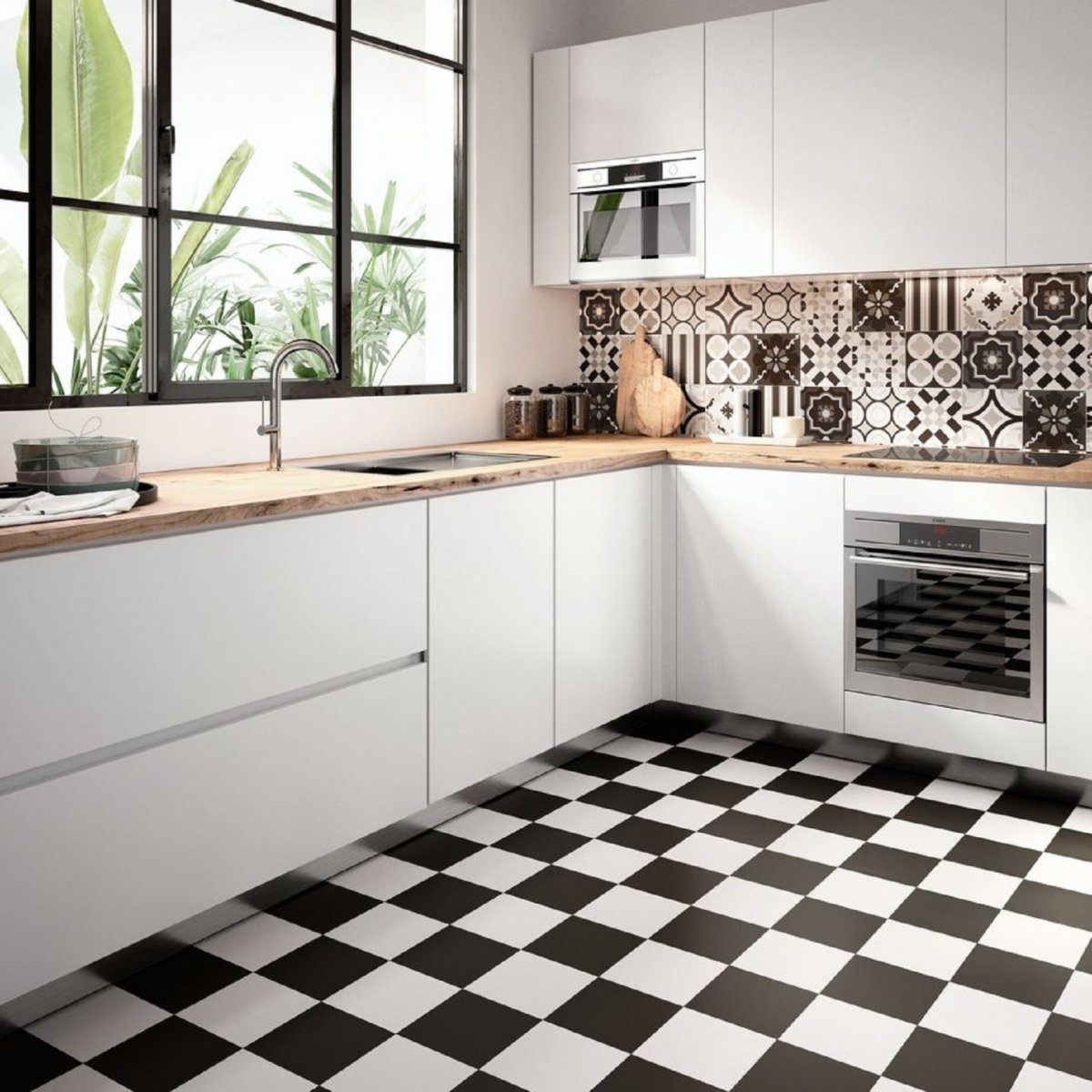 7. Черно белая плитка на кухне