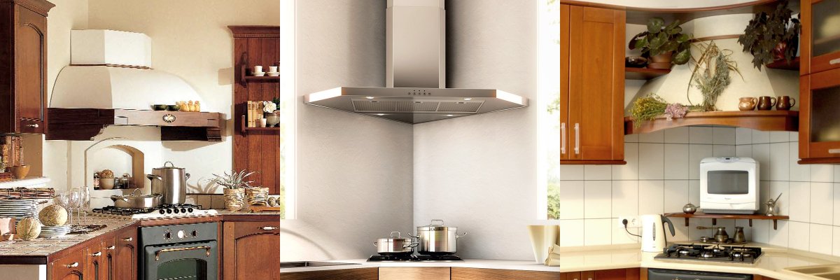 18. Кухни в стиле Кантри с угловой вытяжкой