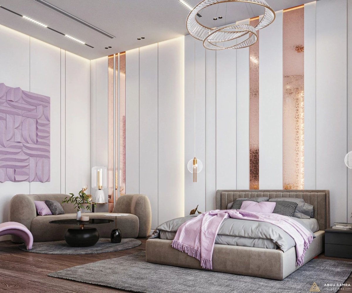 19. Спальня с рейками на стене