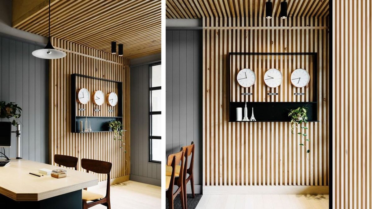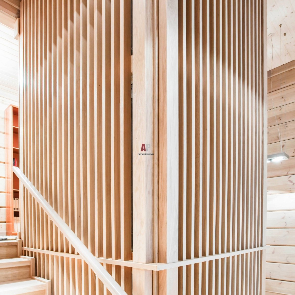 63. Зеркало и деревянные рейки в интерьере в гостиной