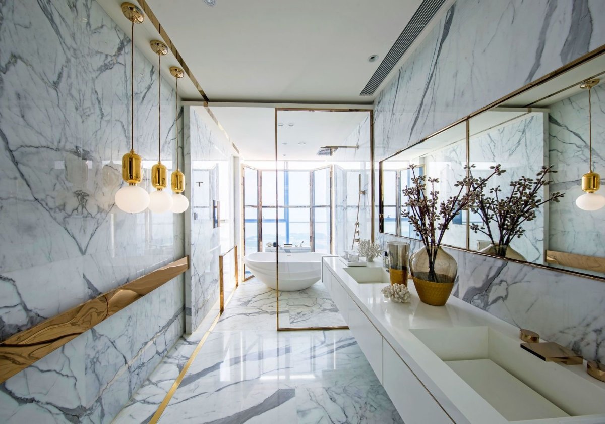50. Мрамор в интерьере ванной