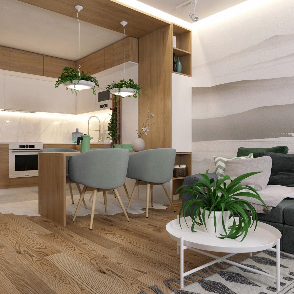 65. Кухня гостиная в эко стиле
