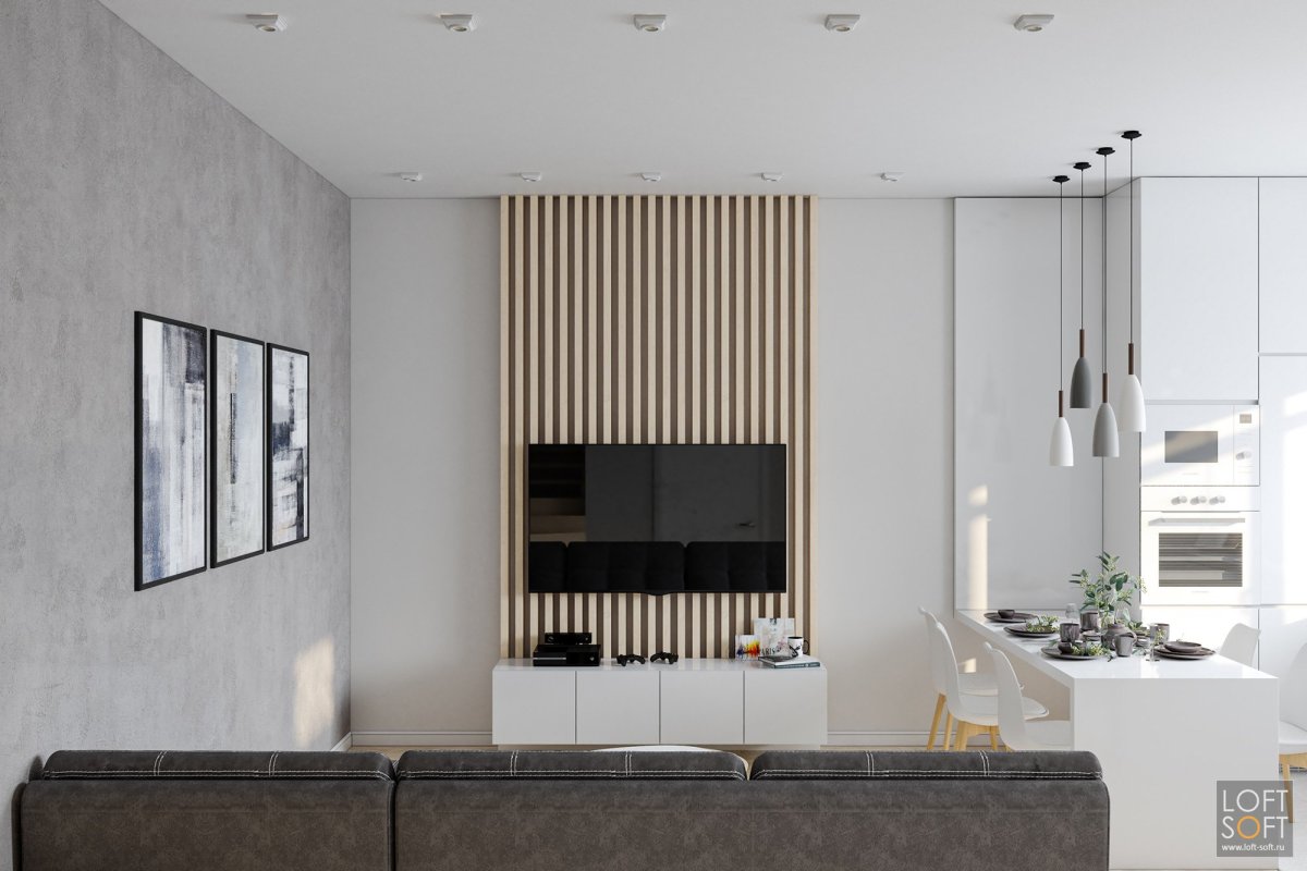 3. Гостиная с деревянными рейками