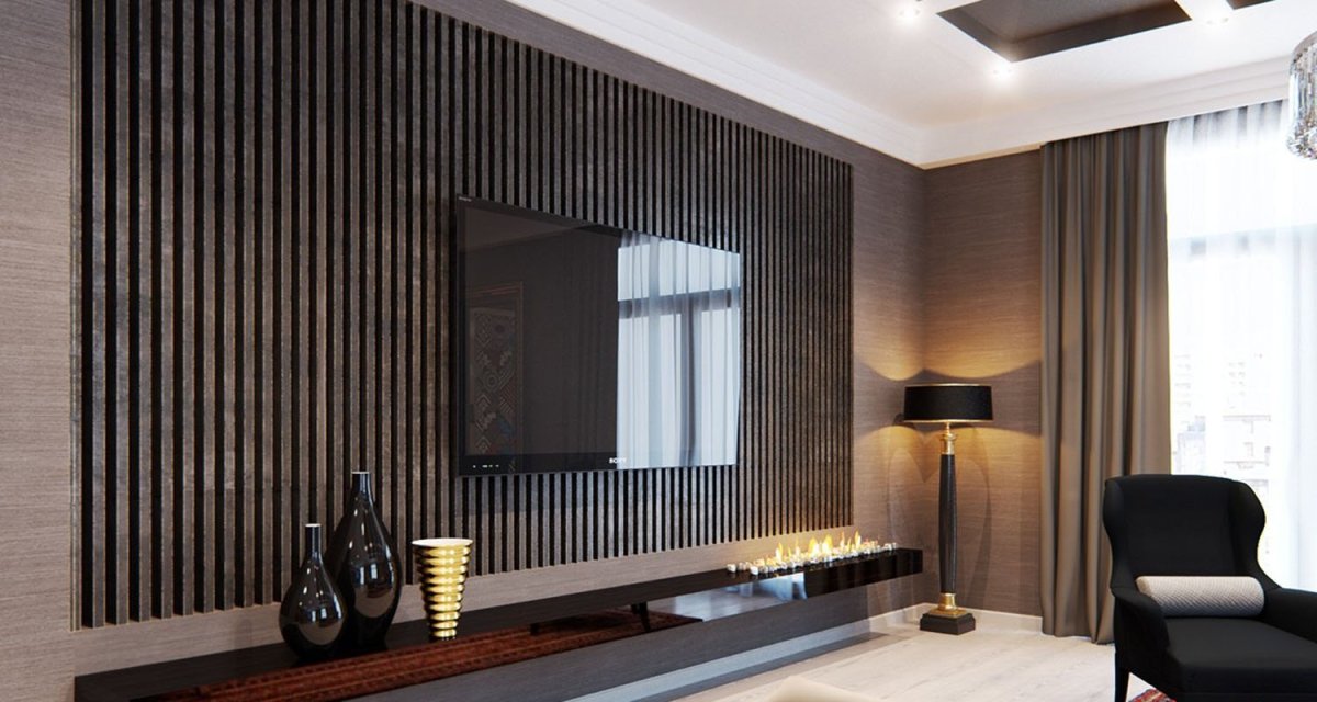 71. Декоративные рейки в зоне телевизора