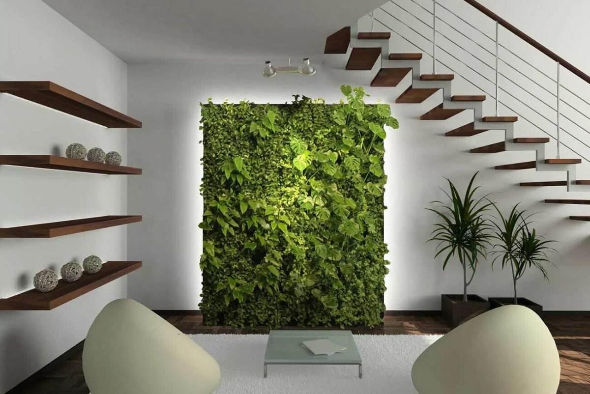 37. Экостиль в гостиной с фитостеной
