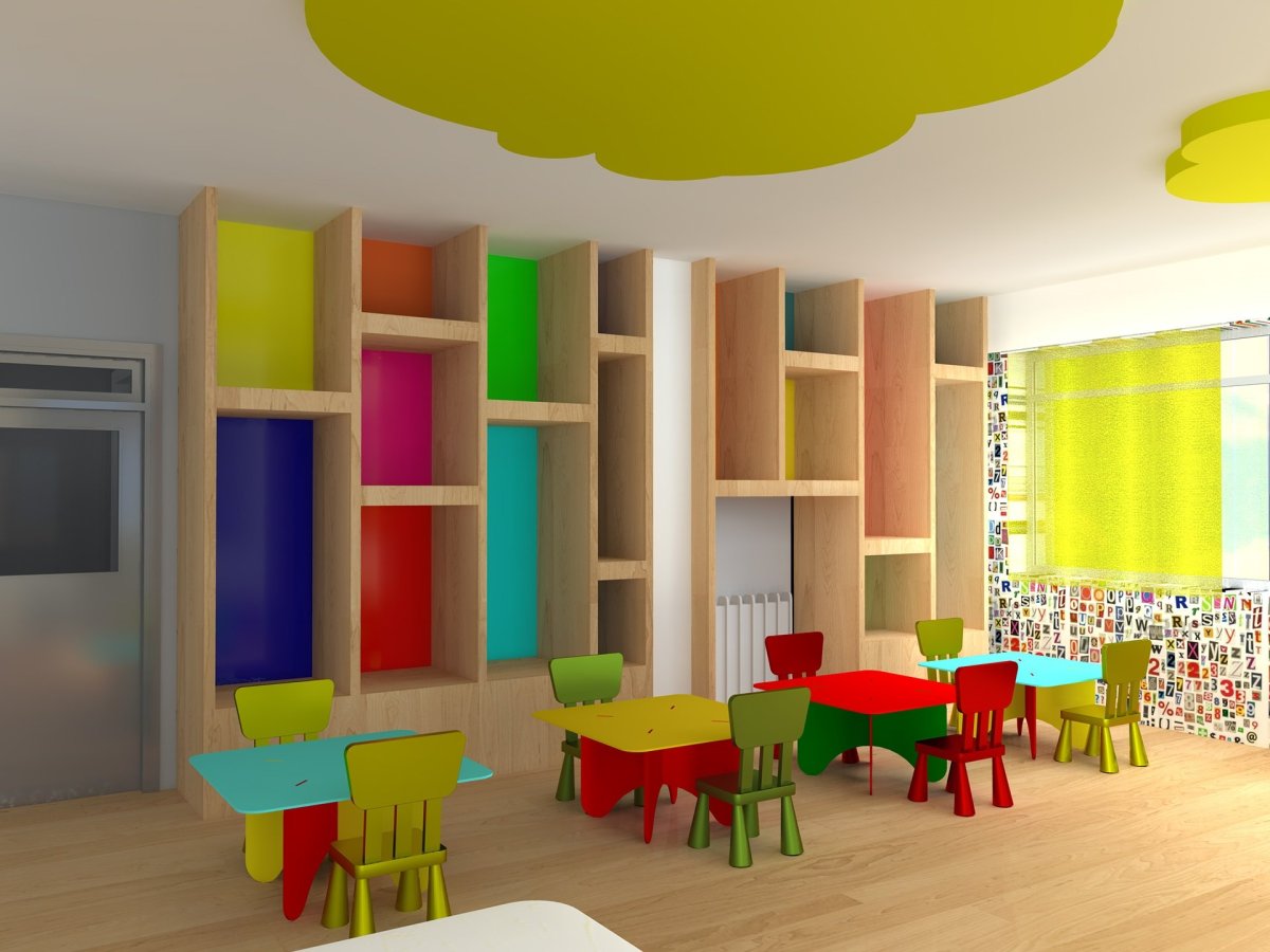 В детском саду необходимо предусмотреть различные зоны, такие как игровая, обучающая и отдыхающая. В игровой зоне должны быть разнообразные игрушки, книги и конструкторы, расположенные на полках или в ящиках для удобства детей. Обучающая зона может содержать столы и стулья для занятий, а также доску или экран для проведения уроков. В отдыхающей зоне можно разместить мягкие ковры или подушки, чтобы дети могли отдохнуть и поспать.