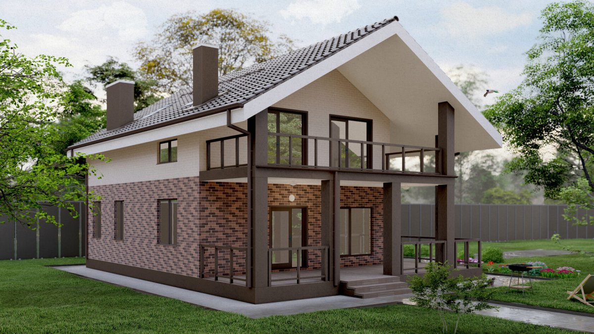 69. Двухэтажный дом с гаражом и террасой и балконом