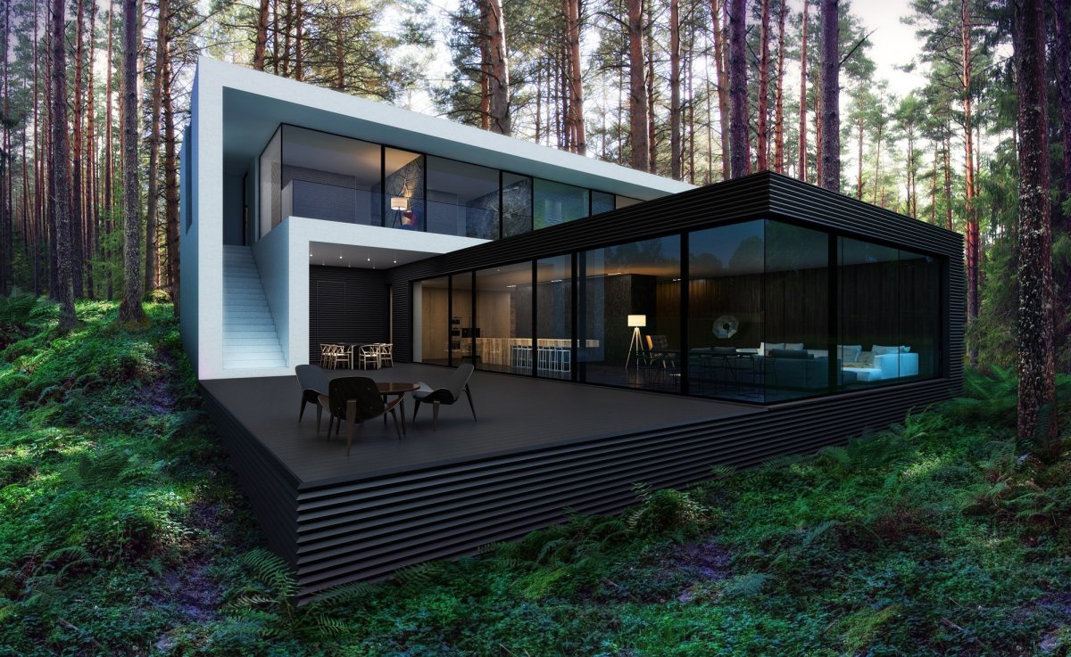 2. Дом в современном стиле в лесу
