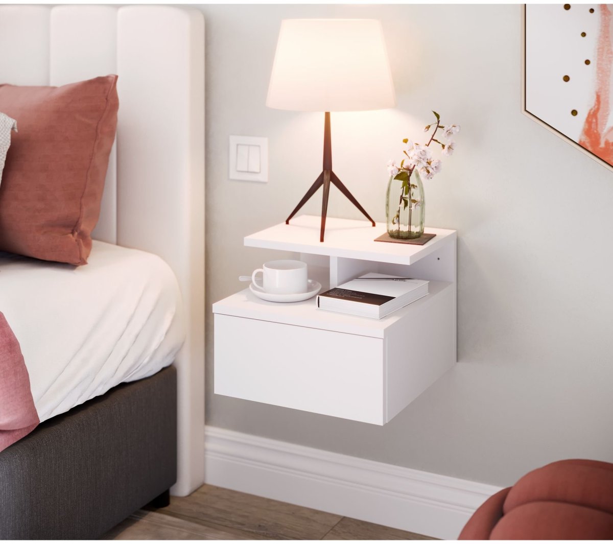 3. Подвесные прикроватные тумбочки