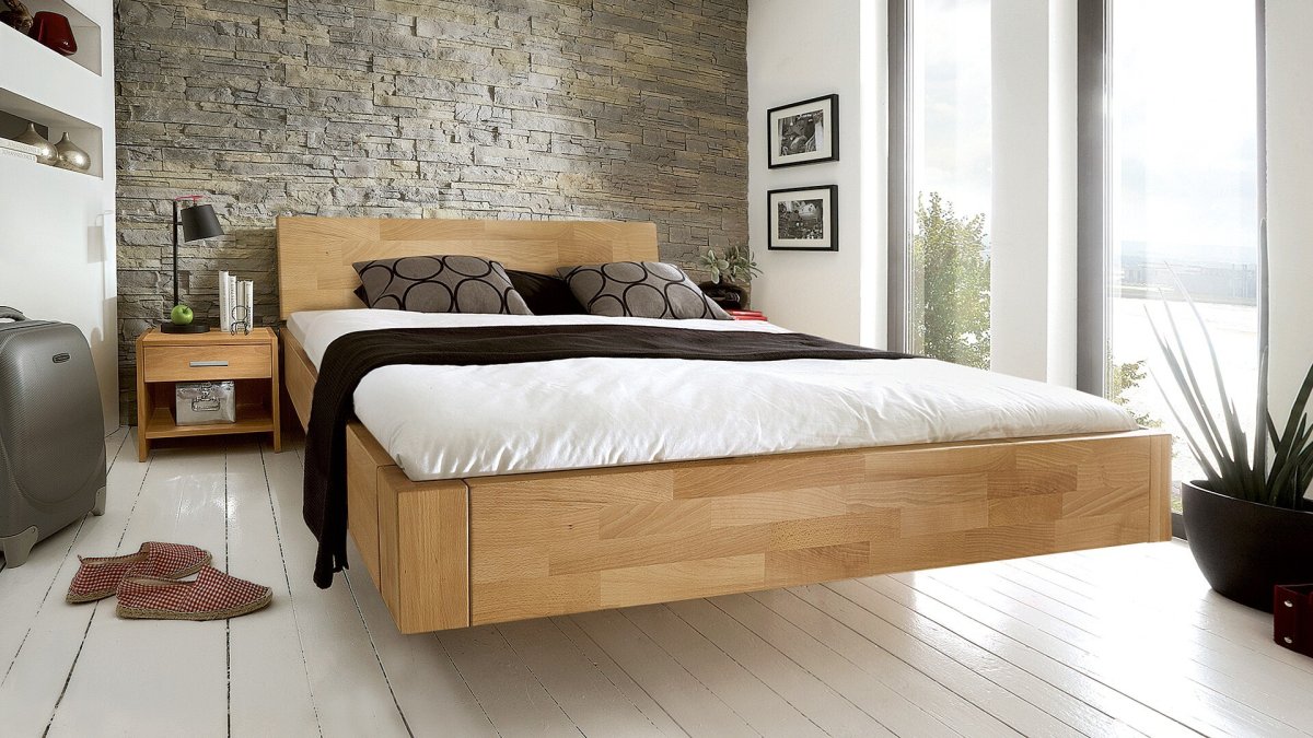 22. Кровать с льняным изголовьем
