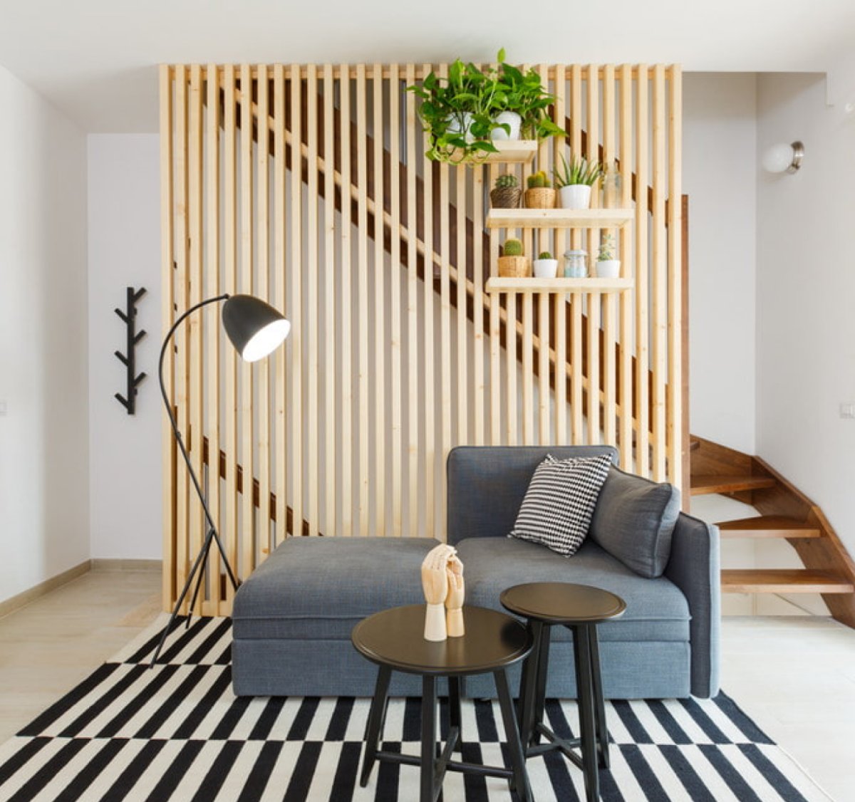 43. Перегородка из реек для зонирования комнаты