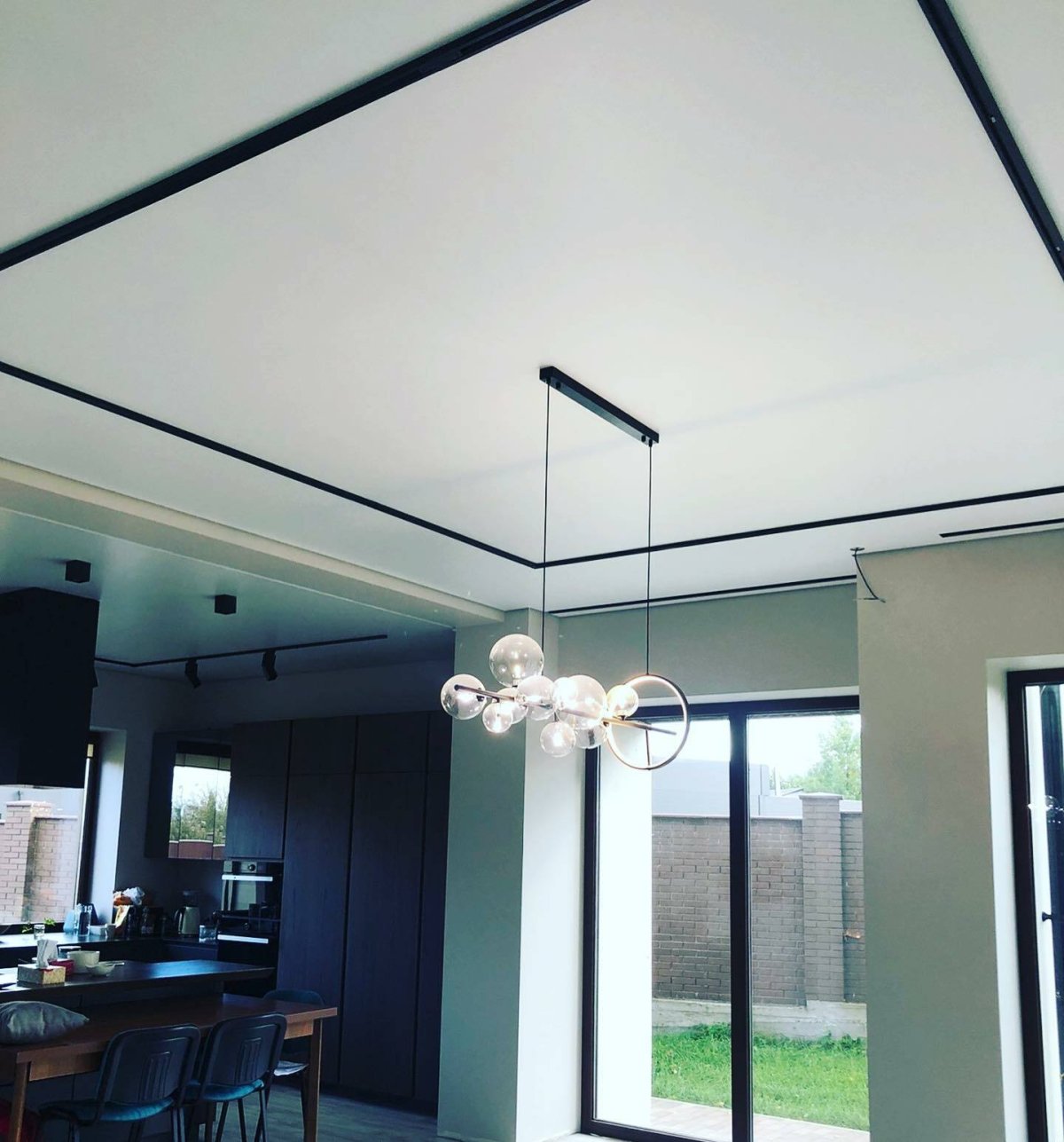 30. Натяжной потолок с черными светильниками