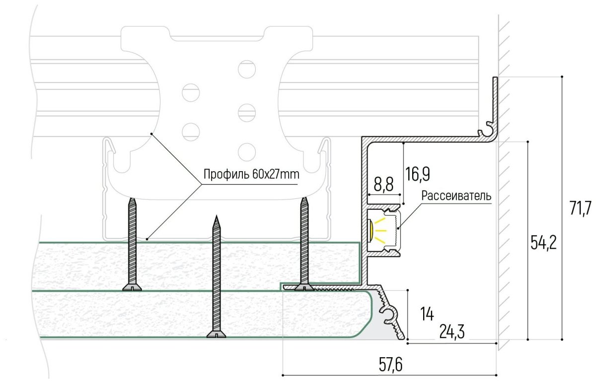 64. Теневой профиль для натяжных потолков