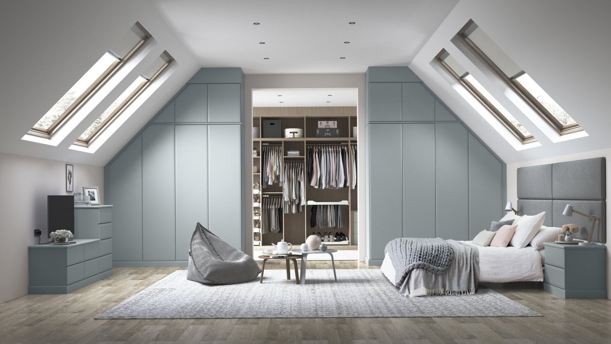 43. Спальня на мансарде с гардеробной