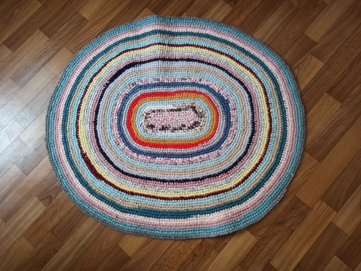 Фото: Овальный коврик крючком из старых вещей