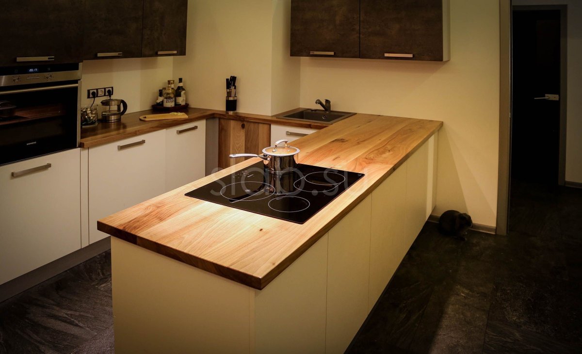 3. Столешка индийское дерево в белой кухне