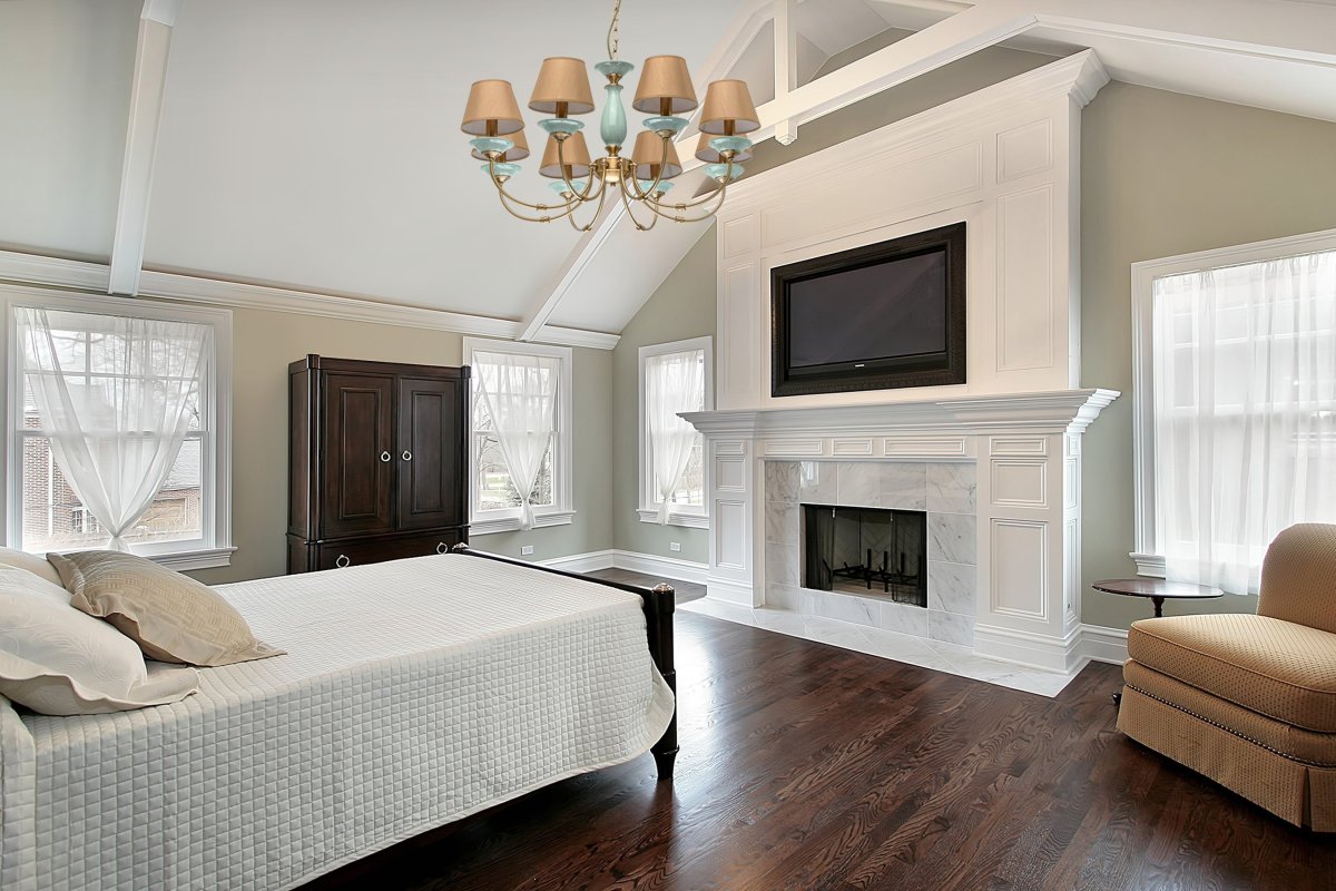40. Серая спальня с камином