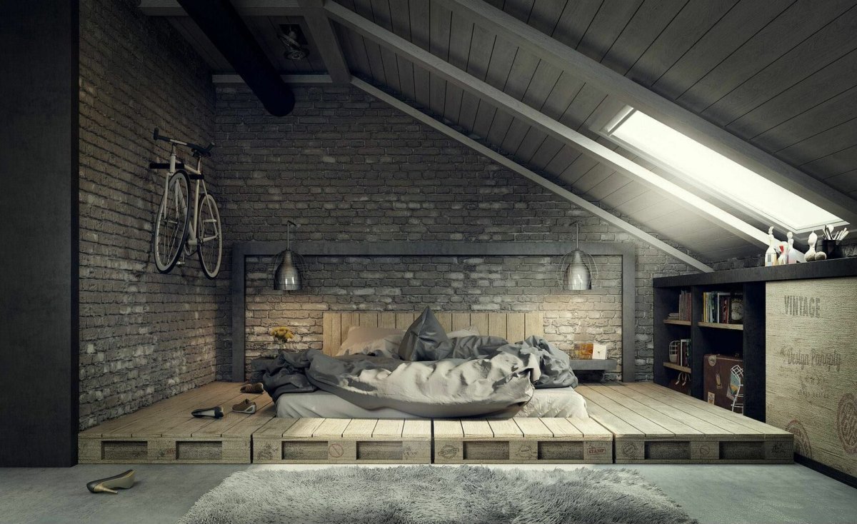 26. Индустриальный стиль мансардной комнаты