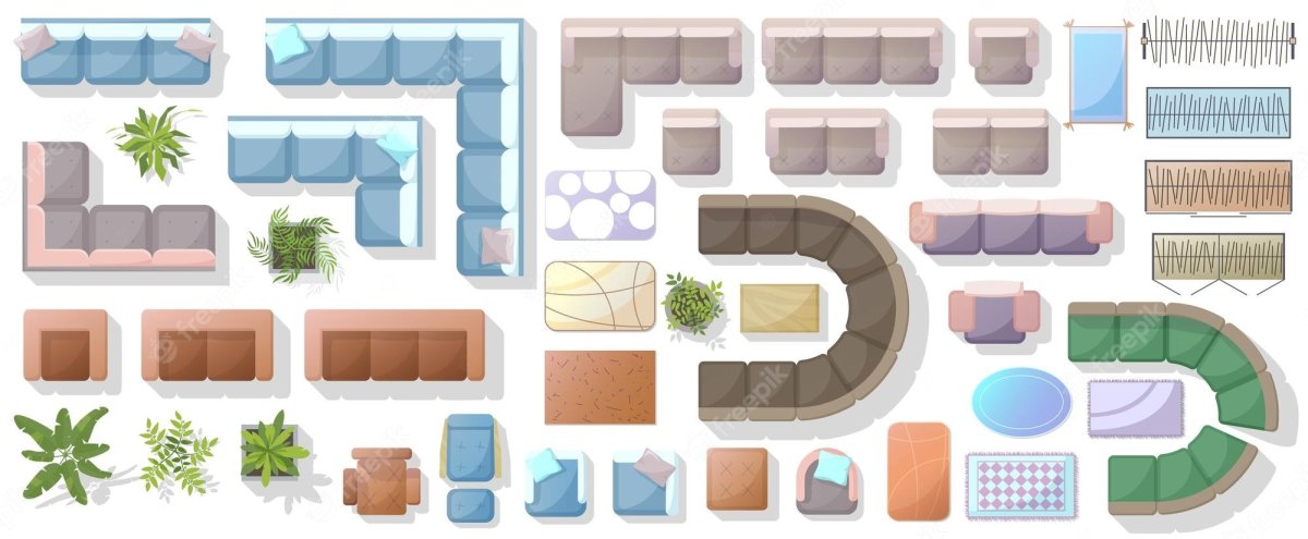 46. Прямоугольная кухня с гостиной 25м2 вид сверху