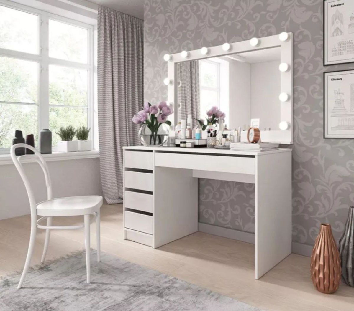 28. Косметический столик с зеркалом в скандинавском стиле