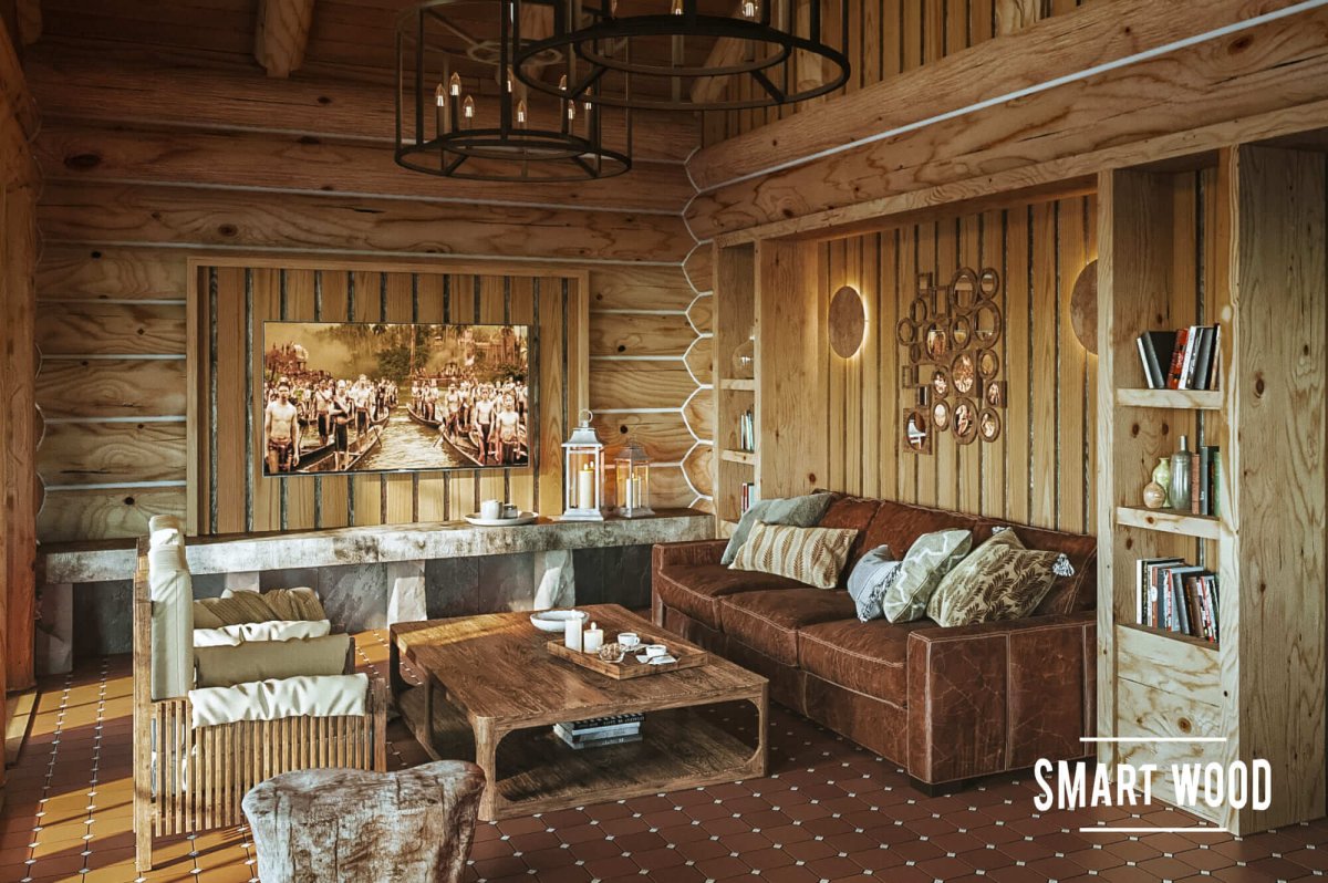 6. Гостиная Прованс Кантри в бревенчатом доме
