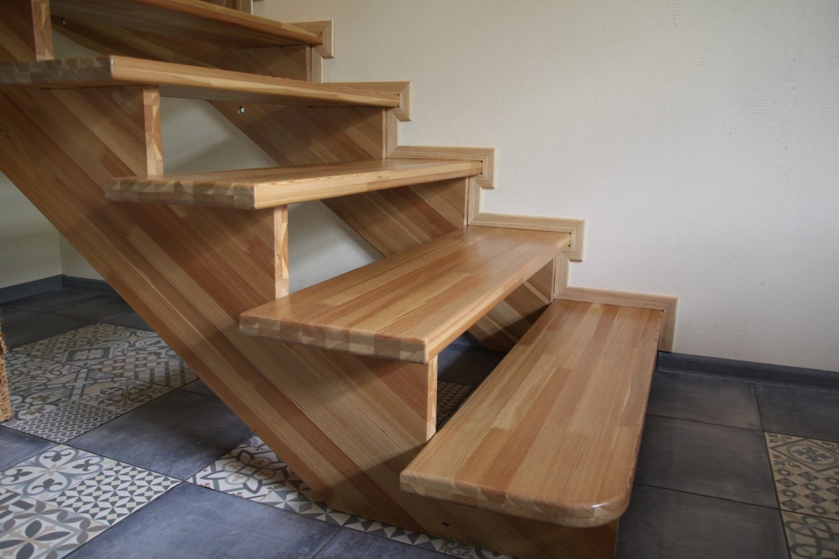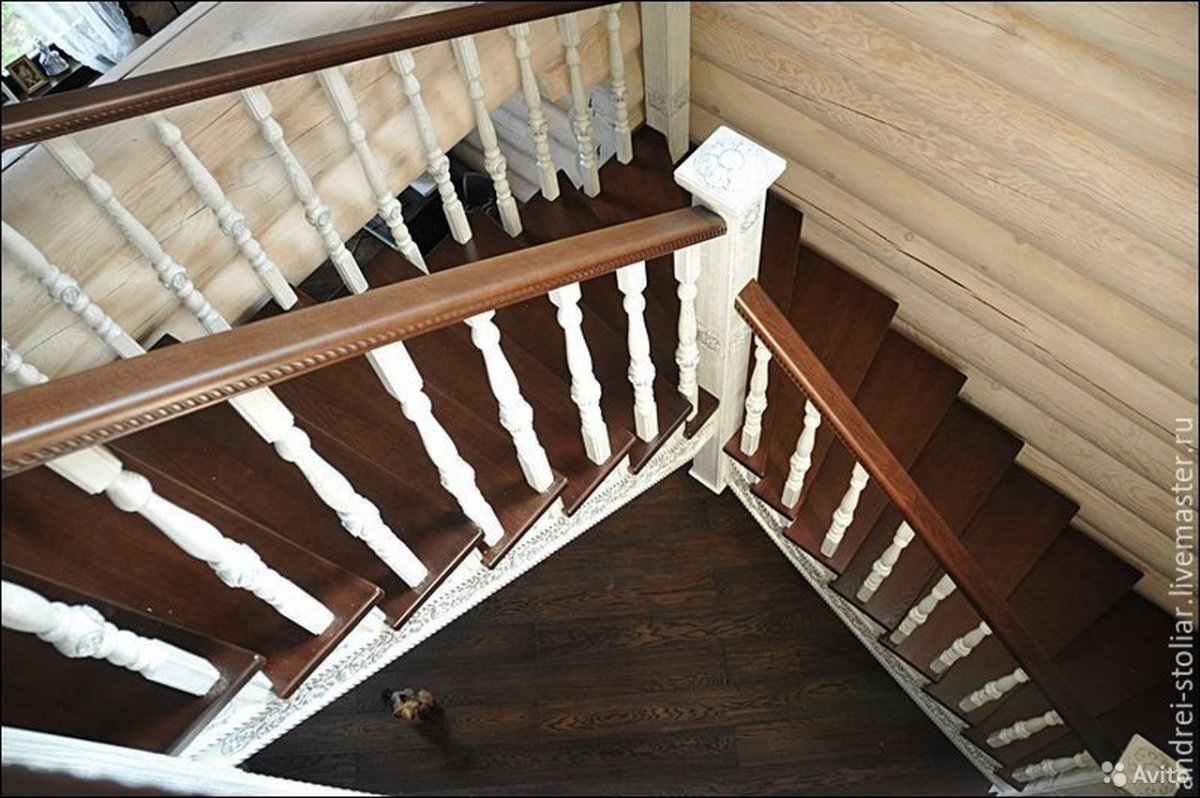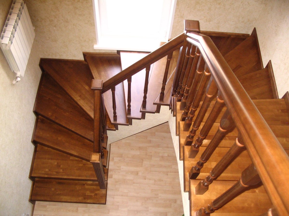 Фото: Лестница на тетивах с забежными ступенями с поворотом на 90