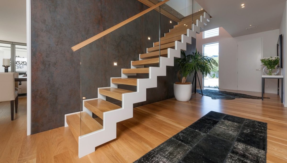 49. Отделка бетонных лестниц деревом ясень в частном доме