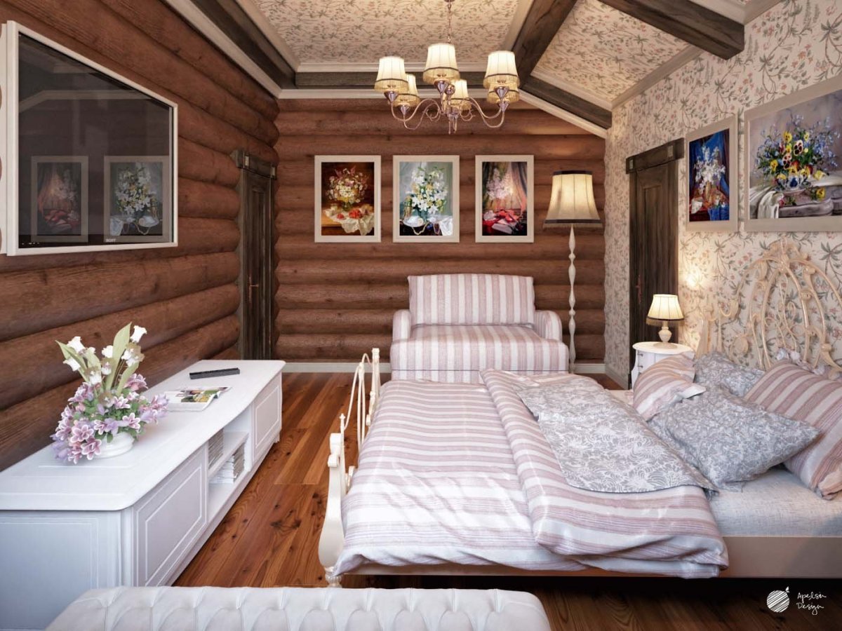 33. Спальня в Прованс стиле в срубовом доме