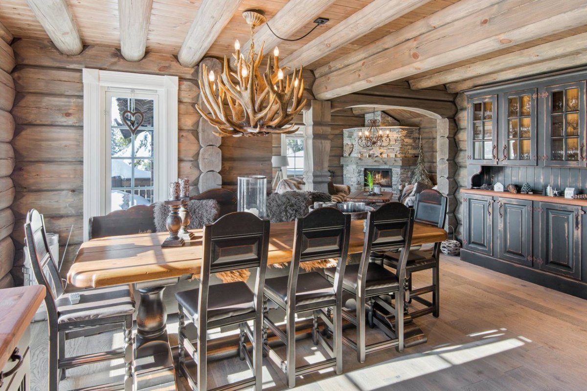40. Столовая в доме из бревна