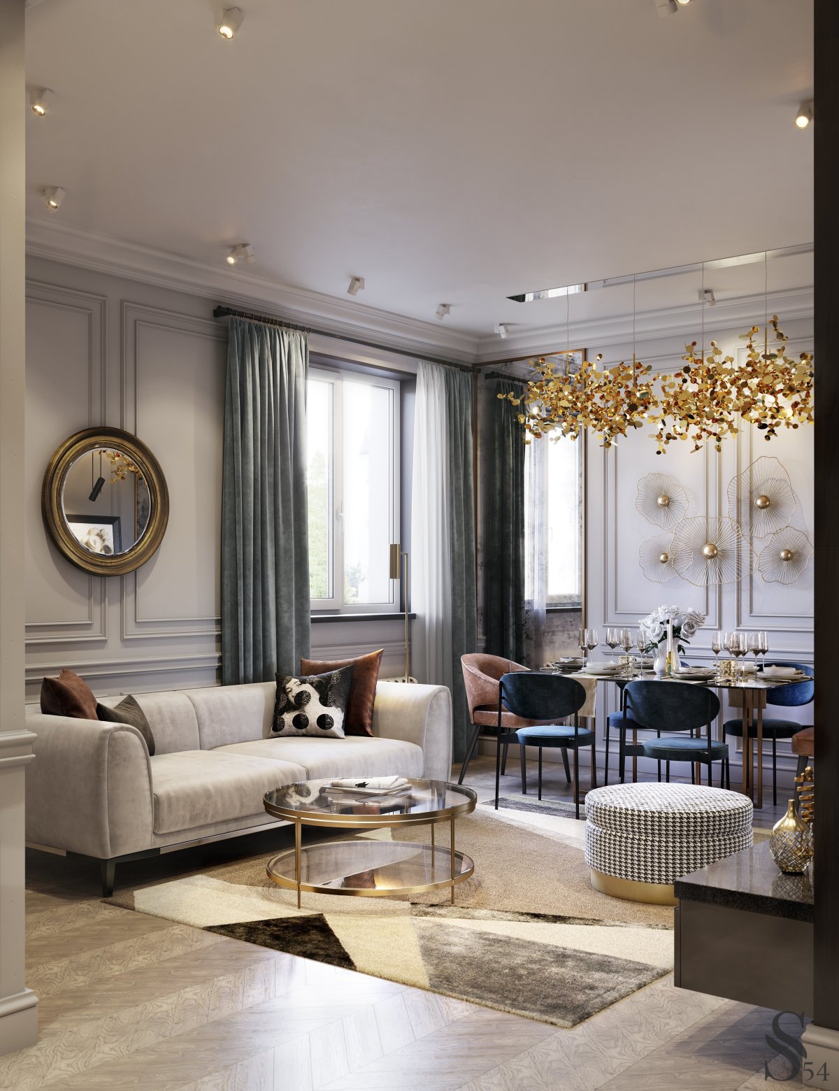 43. Круглая люстра в гостиную