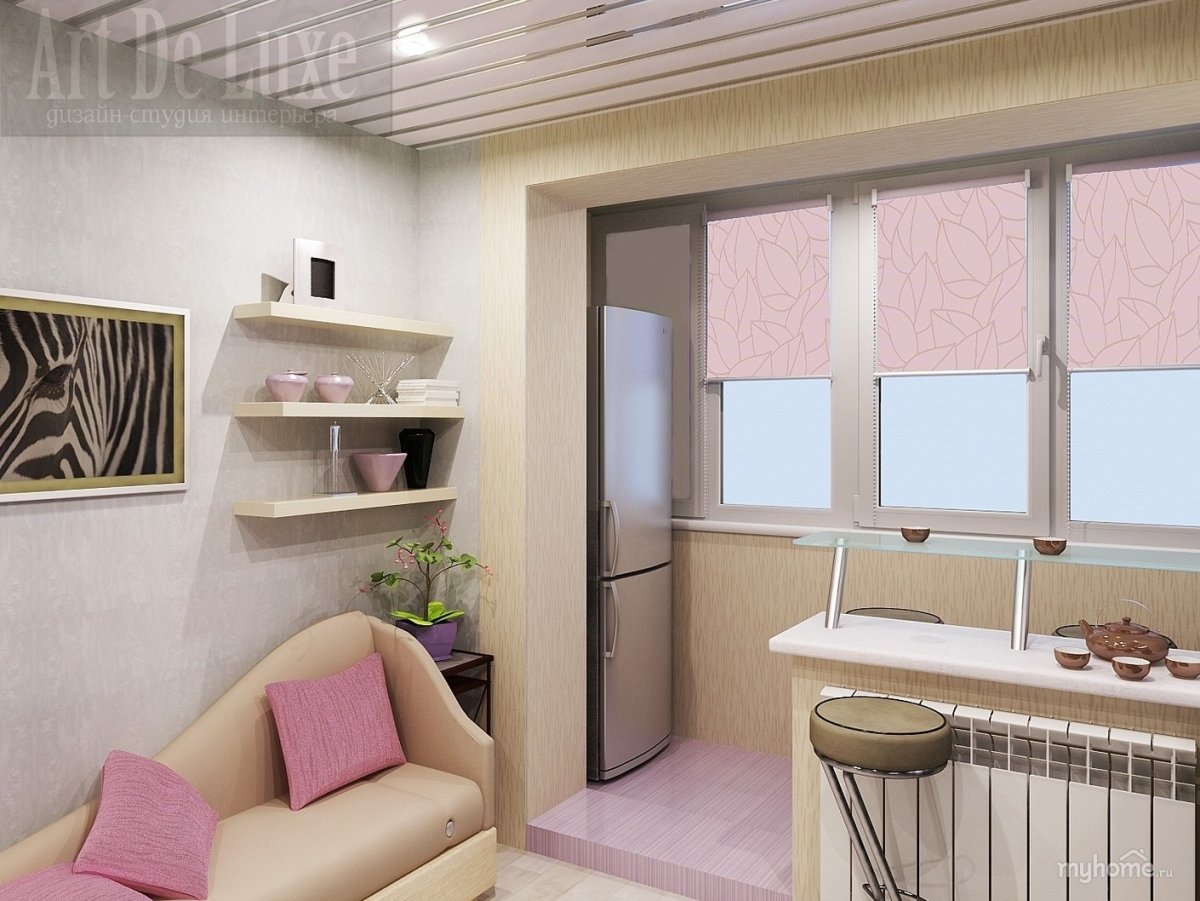 62. Интерьер балкона в квартире 3 метра в цвете хаки
